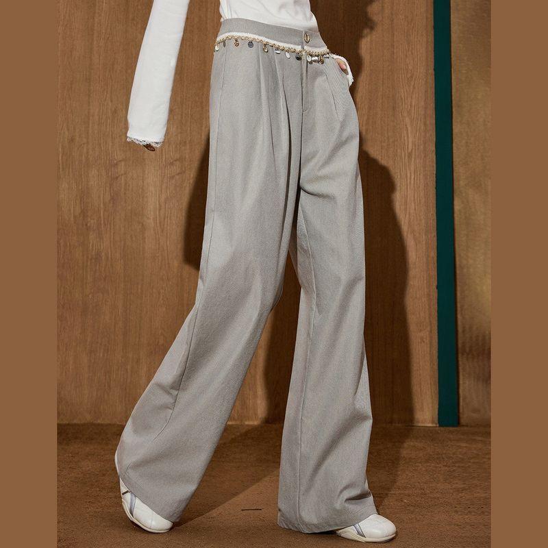 Coolhut Design Shell Fringe Relaxed Fit Loose Slimming Wide-Leg 2025 Autumn Women's Casual Pants