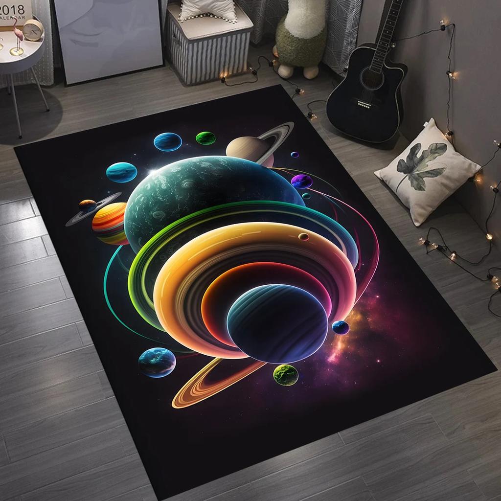 Cartoon Space Astronaut Carpet Planet Spaceman Travel In Space Print Rug for Boy Girl Bedroom Living Room Indoor Small Floor Mat