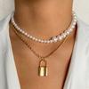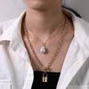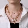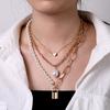 Multi-layer Necklace Female, Creative Retro Simple Octagram Lock Pendant Thick Chain Necklace