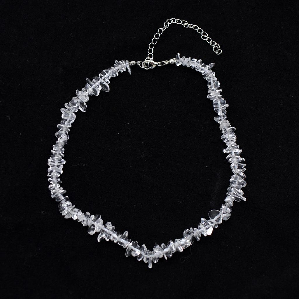 Japanese and Korean Retro Transparent Beaded Stone Necklace Spice Girl Irregular Crystal Stone Neck Chain Fairy Collarbone Chain Tide