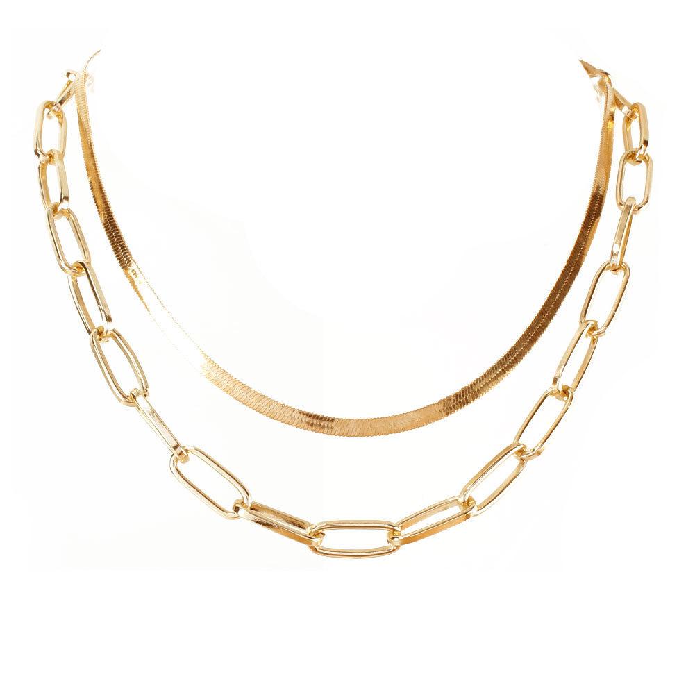 European and American Jewelry, Double-layer Snake Bone Box Chain Necklace, Retro Simple Gold Necklace Female 18140