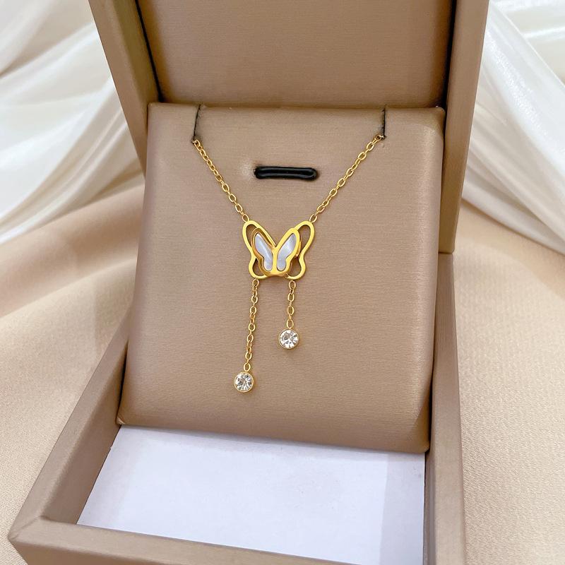 Empty Butterfly Tassel Furnace Real Gold Necklace Female Collarbone Chain With Jewelry