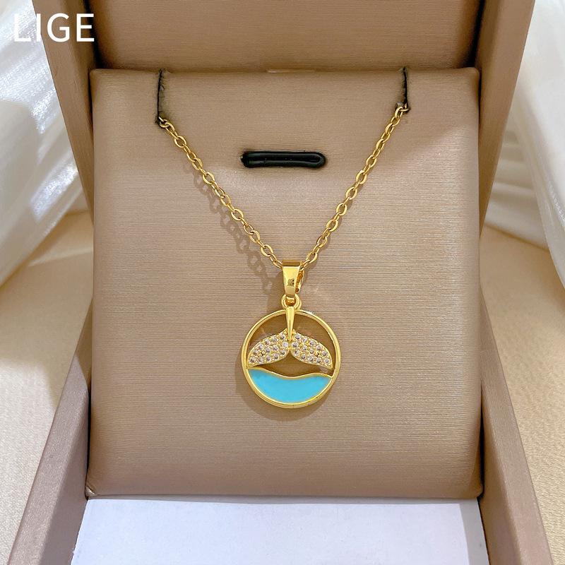 Ocean Fishtail Personality Light Luxury Temperament Gorgeous Full Diamond Necklace Female Versatile Collarbone Chain Titanium Steel Chain
