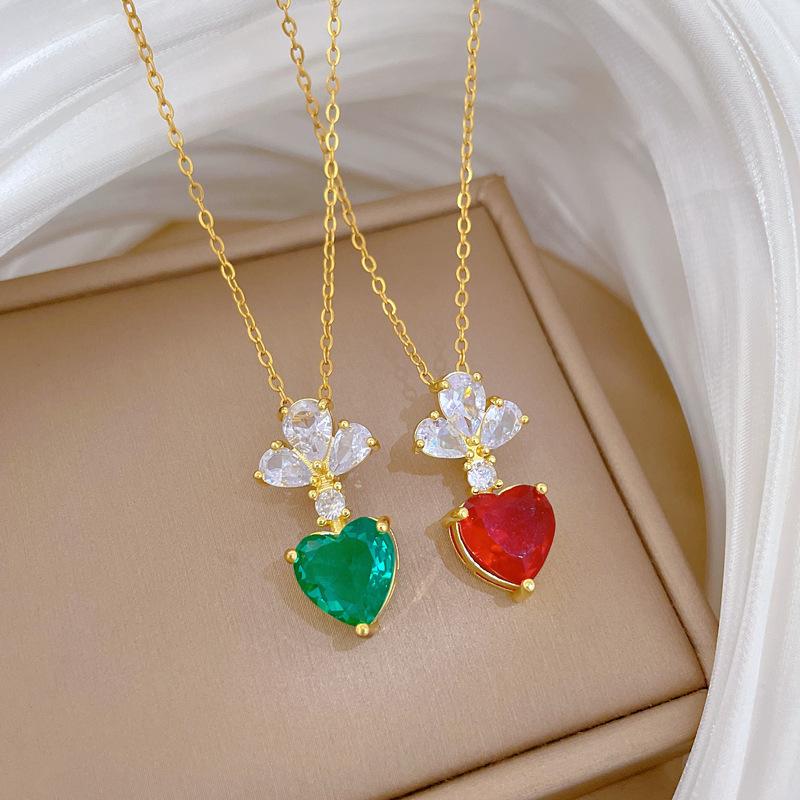 Court Style Flower Love Light Luxury Temperament Gorgeous Full Diamond Necklace Female Versatile Collarbone Chain Titanium Steel Chain