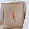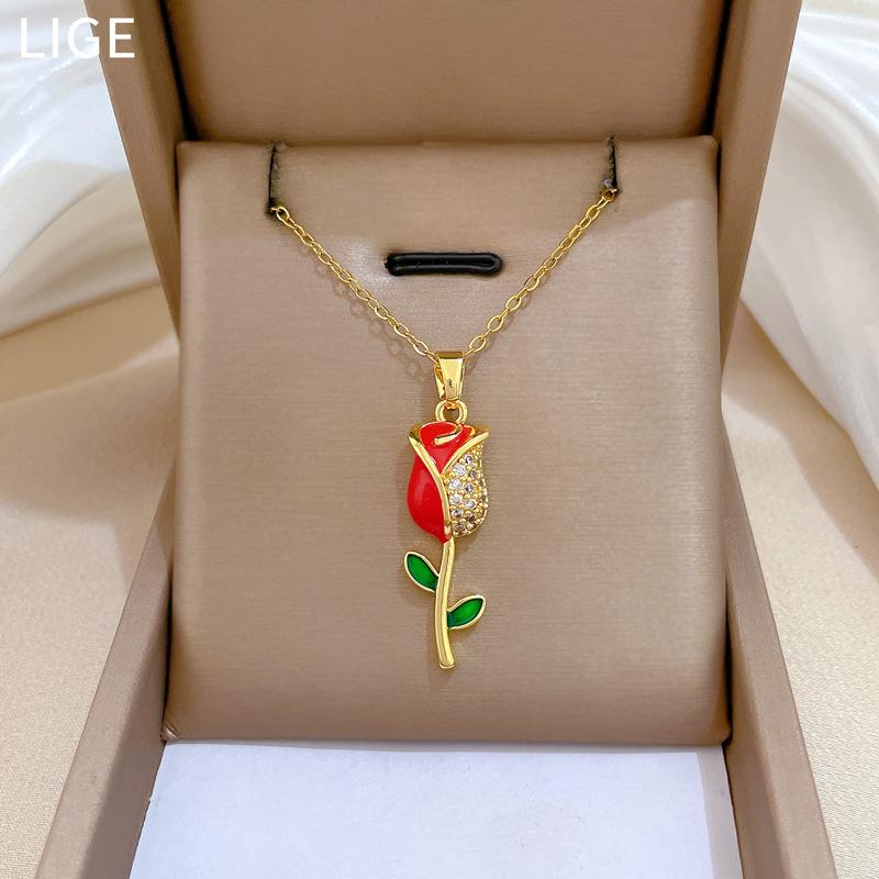 Titanium Steel Oil Drop Rose Fashion Light Luxury Temperament Gorgeous Full Diamond Necklace Female Versatile Collarbone Chain Titanium Steel Chain