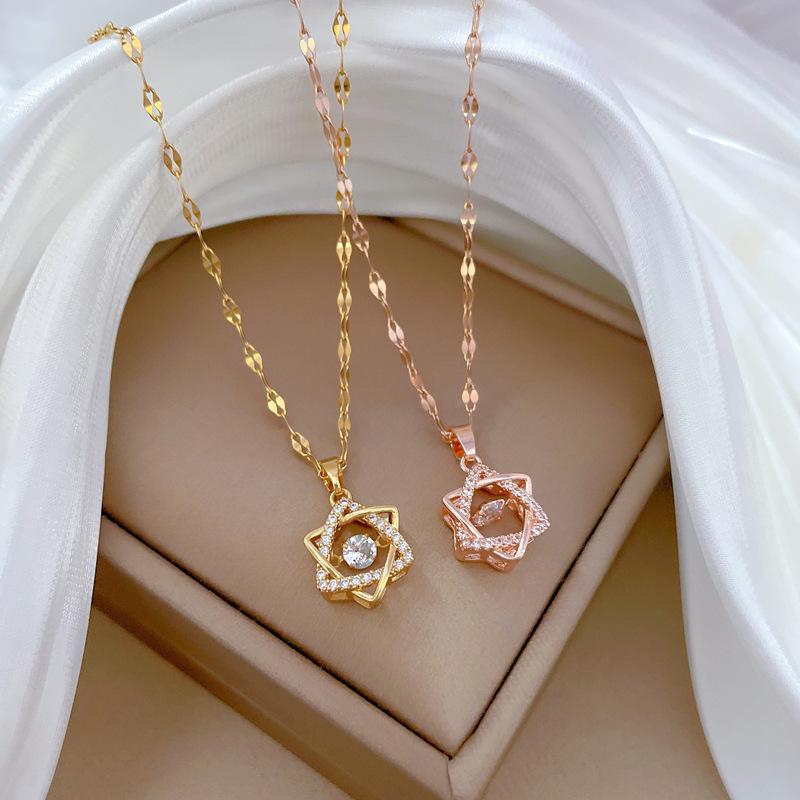 Titanium Steel Smart Hexagram Light Luxury Temperament Gorgeous Full Diamond Necklace Female Versatile Collarbone Chain Titanium Steel Chain