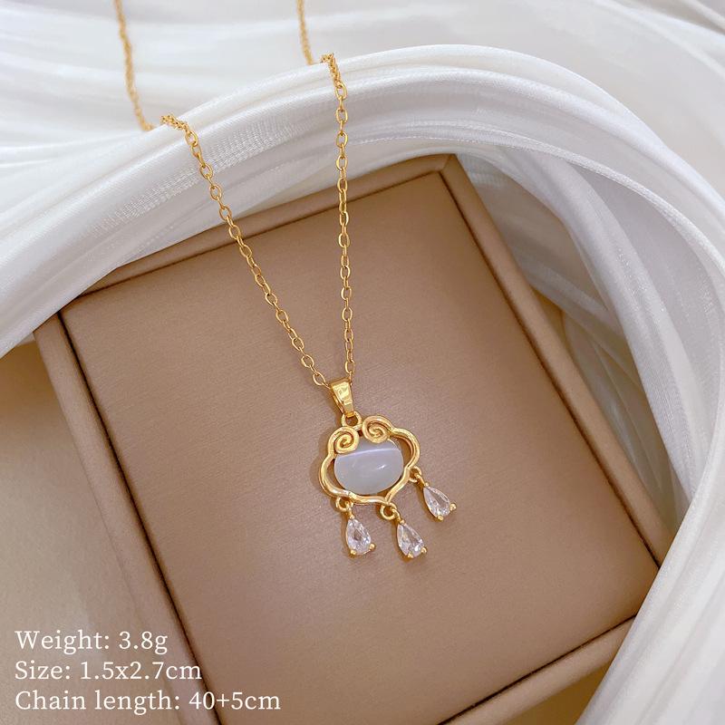 Opal Lucky Lock Light Luxury Temperament Gorgeous Full Diamond Necklace Female Versatile Collarbone Chain Titanium Steel Chain
