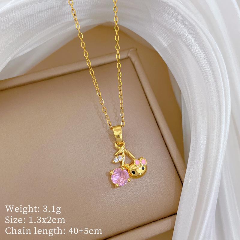 Cherry Cat Fashion Light Luxury Temperament Gorgeous Full Diamond Necklace Female Versatile Collarbone Chain Titanium Steel Chain