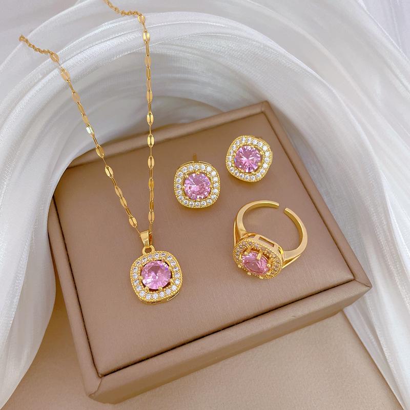 Square Zircon Sky Necklace Earrings Ring Set Light Luxury Personality Temperament Earrings Necklace Combination
