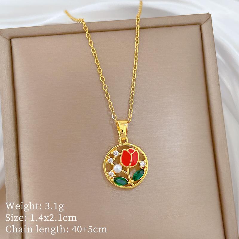 Titanium Steel, Dripping Rose Light Luxury Temperament Gorgeous Full Diamond Necklace Female Versatile Collarbone Chain Titanium Steel