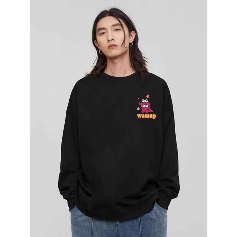 Wassup Mr. Crocodile American-Style Heavyweight Crewneck Sweatshirt for Men, Autumn and Winter, Loose Casual Trendy Versatile Fleece-Lined Top