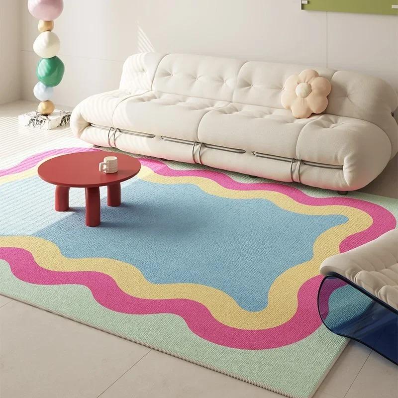 Wavy Stripe Carpet Mat Rug Rainbow Colors Pastel Gradient Modern Sweet Home Decoration Floor Mat Carpets for Living Room Bedroom