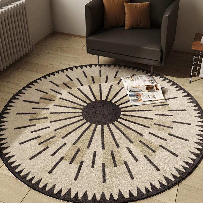 Geometric Round Carpet Radial Lines Print Mat Modern Minimalist Home Decor Rug for Living Room Bedroom Kitchen Entrance Terrace