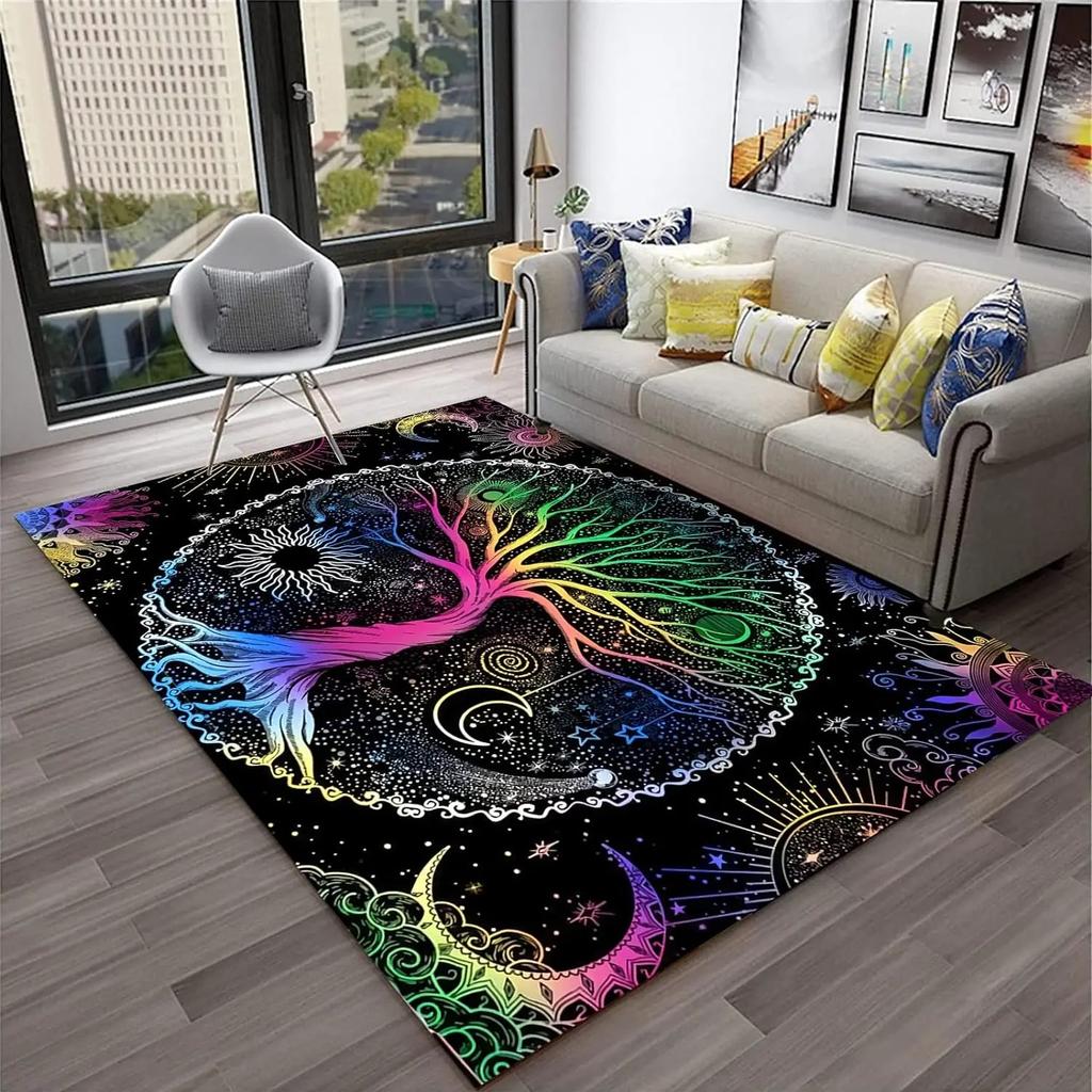 Rainbow Tree of Life Fantasy Rug Durable Floor Mat for Living Room Bedroom, Psychedelic Fantasy Home Decor Carpet