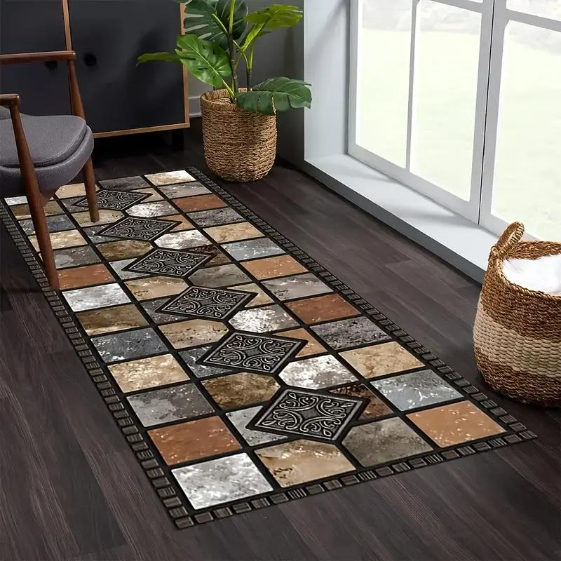 Stone-Effect Tile Rug Stain-Resistant and Easy To Maintain Entrance Hallway Doormat Corridor and Hallway Rug Home Decor