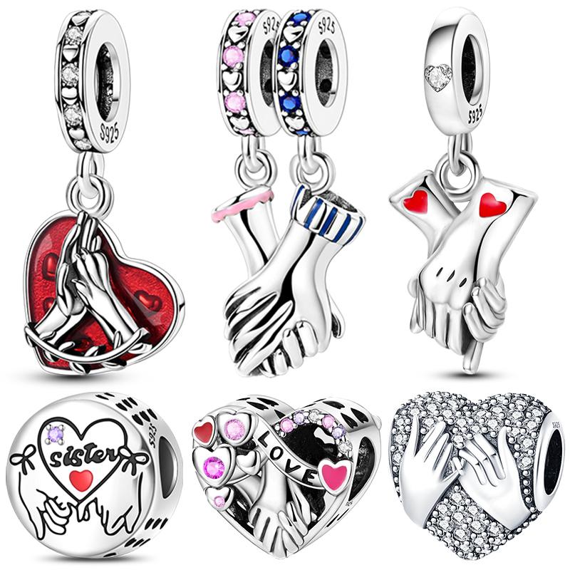 925 Sterling Silver Hand In Hand Retractor Sisters Love Beads Pendants Charms Fit 925 Original DIY Bracelets Jewelry