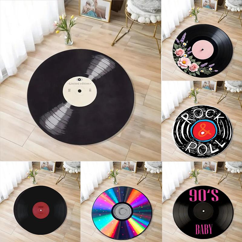Retro Vinyl Record Pattern Carpet, Exclusive Gift Carpet for Music Lovers Bedroom Decorative Mat, Sofa & Table Chair Floor Mat