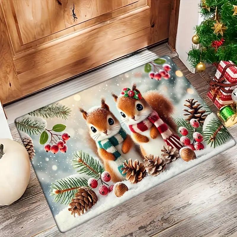 Christmas Squirrel Welcome Mat Non Slip Floor Carpet Bedroom Kitchen Door Mat Indoor and Outdoor Carpet Home Decoration Carpet