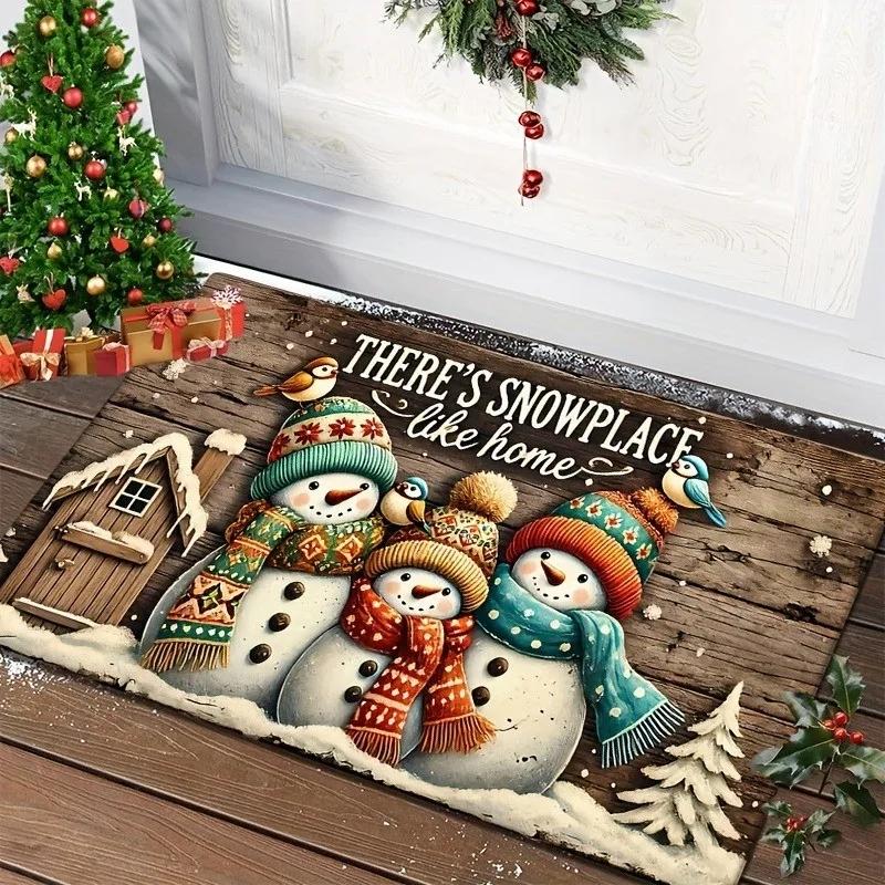 Christmas Snowman Welcome Mat Floor Rug Washable Bedroom Kitchen Entrance Doormat Polyester Home Decor Carpet