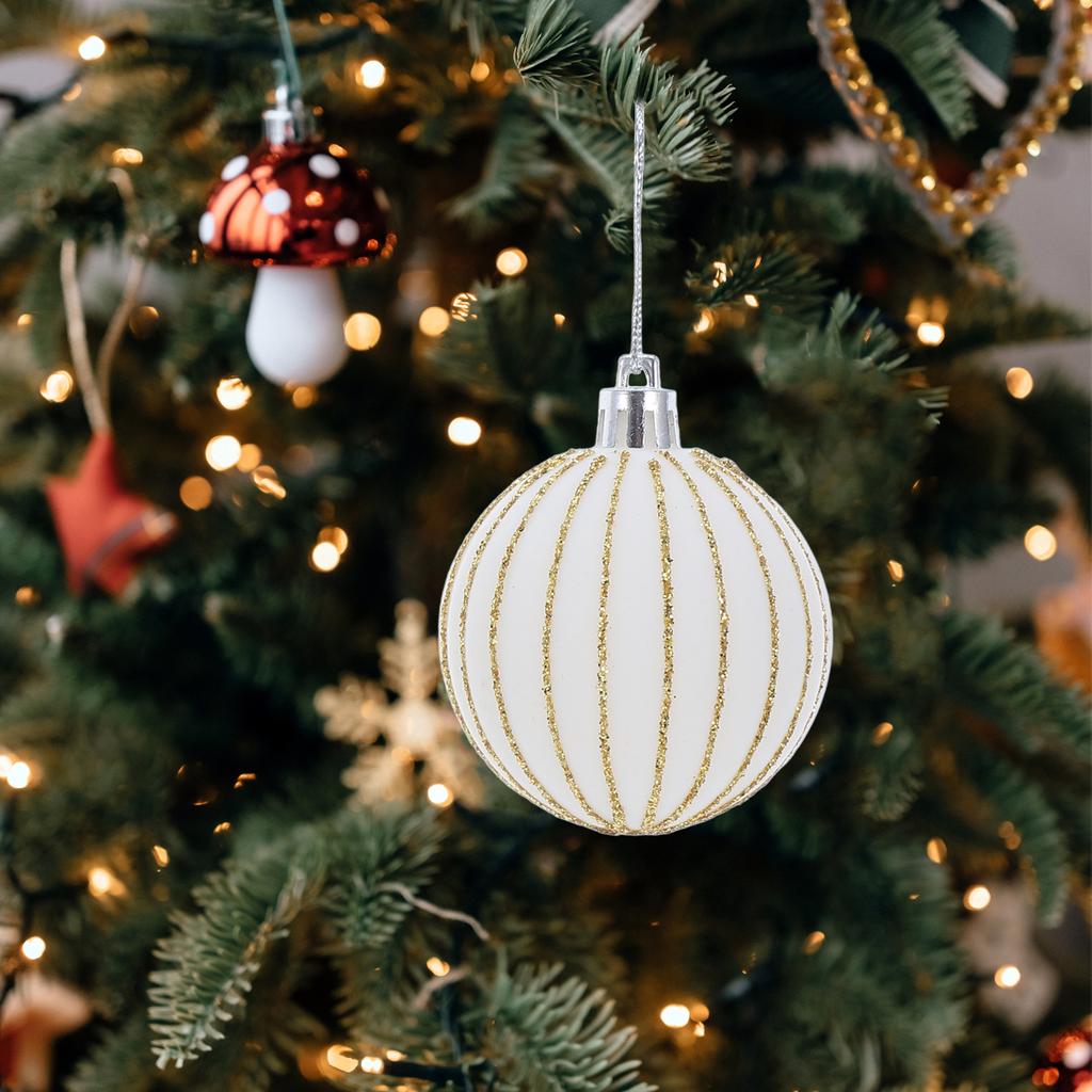 6Pcs Xmas Tree Hanging Ornaments Flocked Ball Decorations for Christmas Holiday Party Home Mall Festive Scene Xmas Hanging Balls