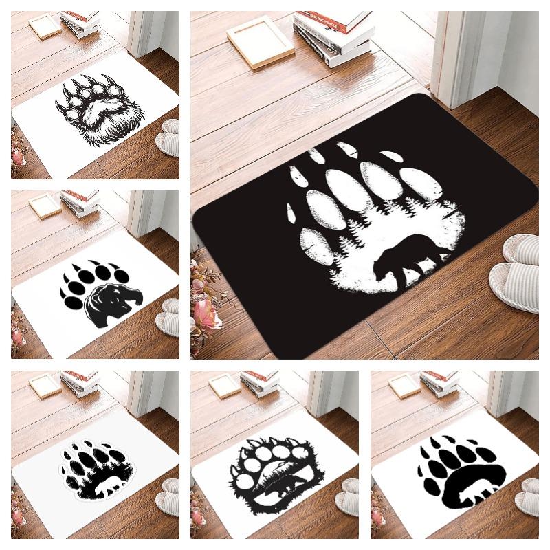 Creative Silhouette of Bear Paw Printing Non-Slip Waterproof Doormat Easy Clean Entrance Floor Mat Home Decor Durable So Fashion
