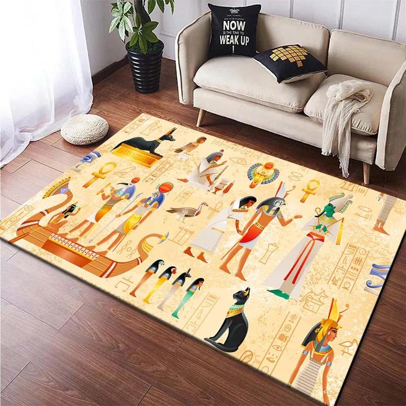 Egyptian Pharaonic Painting Rugs for Bedroom Home Decor Ancient Egypt God Cat Anubis Carpet Floor Mats for Living Room Non-slip