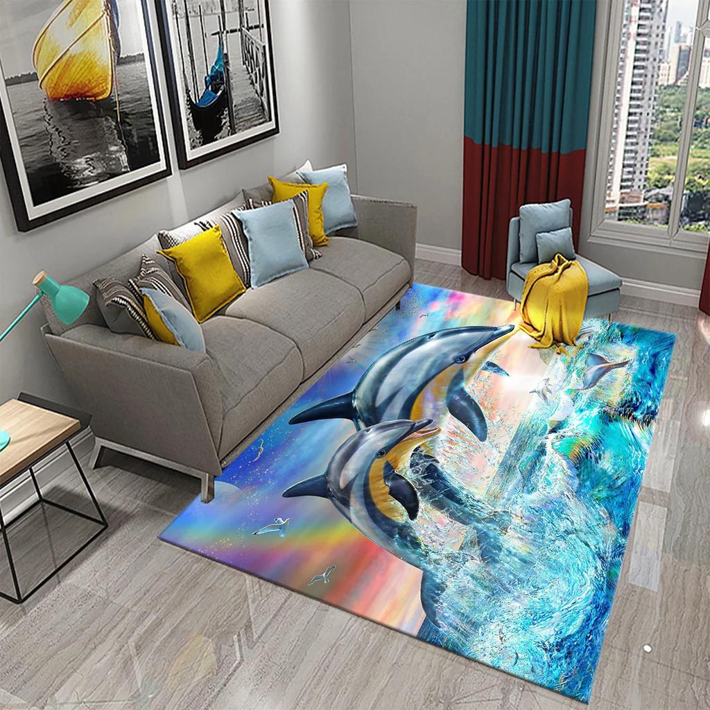 3D Fantasy Dolphin Carpet for Living Room Bedroom Kids Rug Dolphin Series Carpet Hallway Floor Mat Bathroom Kitchen Non-slip Rug