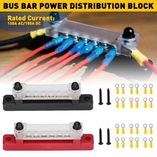 Pair 150A 12V 6 DC WAY BUS DISTRIBUTION TERMINAL BAR FOR BLOCK CAR MARINE BOAT