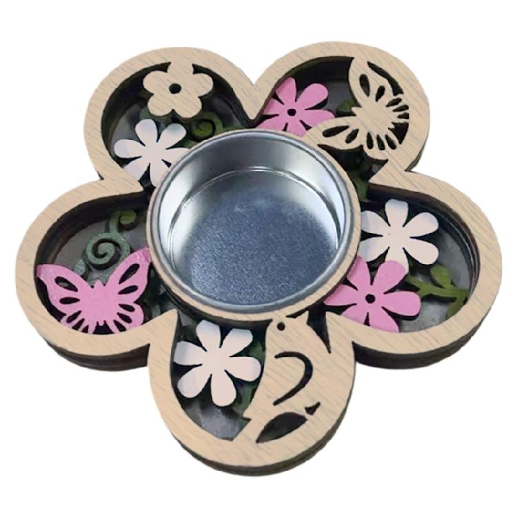 Wood Candle Holder Candlestick With Exquisite Flower And Butterfly Pattern For Living Room