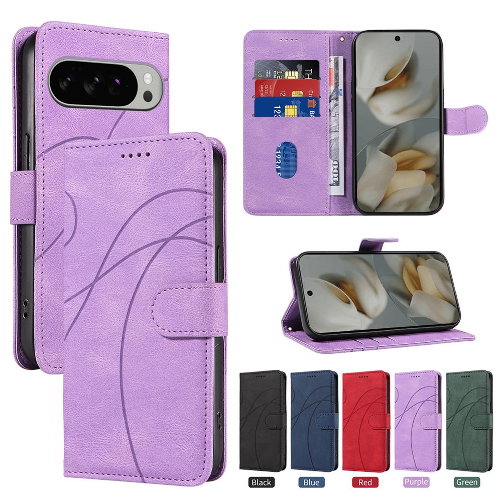 Magnetic Leather Wallet Case for Google Pixel 10 9 9A 8 8A 7 7A 6 6A Pro XL 5G Phone Flip Cover Kickstand Curve Line Shockproof