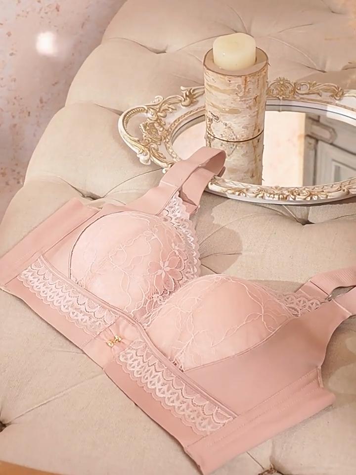 1. Wire-free, slimming bra for larger busts, lifts and supports side breast tissue, thin lace design.