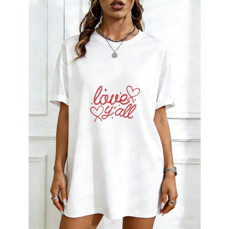 Oversized T Shirt Dress Black Love Yall Rhinestone Heart Print Casual Streetwear Fashion Women Summer Outfit