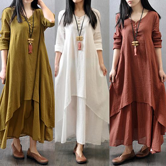 Features: Multilayer, Irregular Hem, Comfortable, Elegant, Long Maxi Dress, Loose