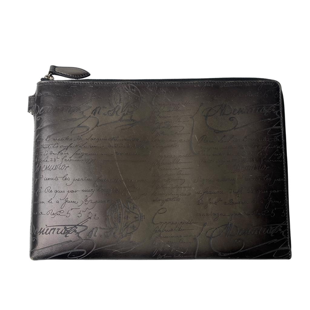 Used BerlutiClutch Bag Dark Brown Leather Mens