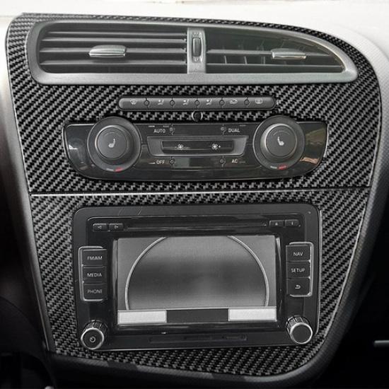 LHD Carbon Fiber Car Interior Center CD Panel Cover Trim For Seat Leon 2005-2012