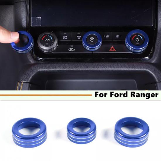 Fit For Ford Ranger -2025 Blue Aluminum AC Radio Switch Trim Ring Knob Cover