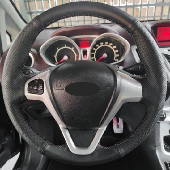 All Black Steering Wheel Leather Cover For Ford EcoSport 2014 2015 2016 2017