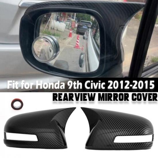Carbon Fiber Ox Horn Rear View Mirror Cover Trim 2pcs For Honda Civic 2012-2015