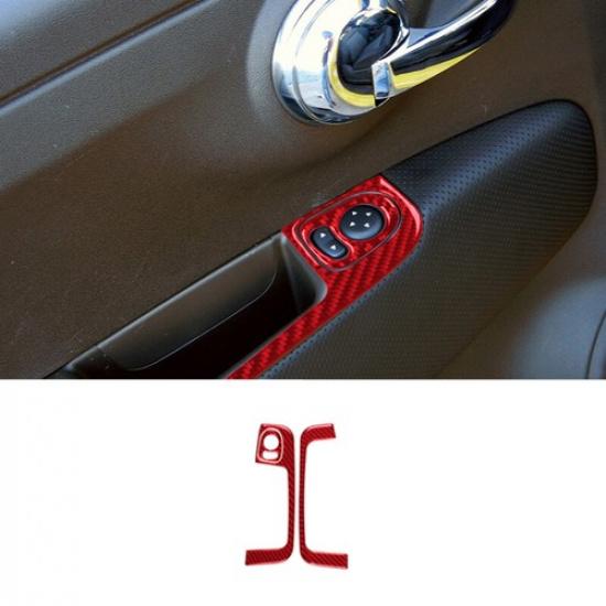 Red Carbon Fiber Door Switch Frame Cover Sticker For Fiat 500 2012 2013 2014 15