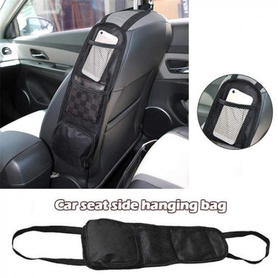 Portable 2 Mesh Pocket Oxford Cloth Auto Car Seat Side Back Black Storage Bag G