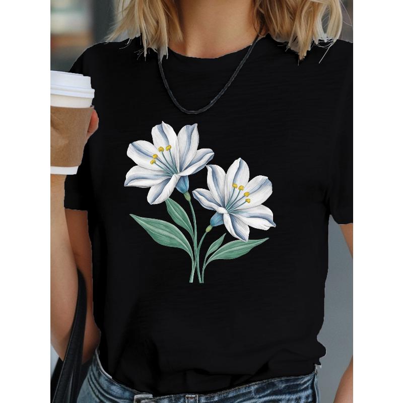 Polyester Short Sleeve Graphic T-Shirt Trendy Print Crew Neck Soft Breathable Summer Casual