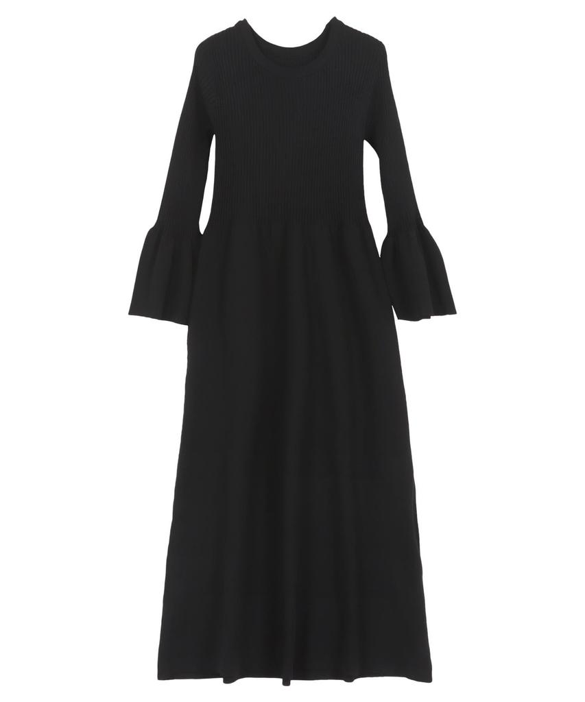 This knit dress has a feminine impression. The A-line design that widens from the waist and the flared cuffs create a three-dimensional silhouette, making it a simple design packed with points. Simply wearing it under a coat will complete your outfit.