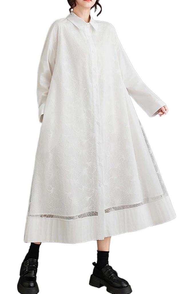 This shirt dress has a simple design. It is moderately thick and breathable, providing a natural and comfortable fit. Its figure-flattering and understated design means it can be worn throughout the seasons.