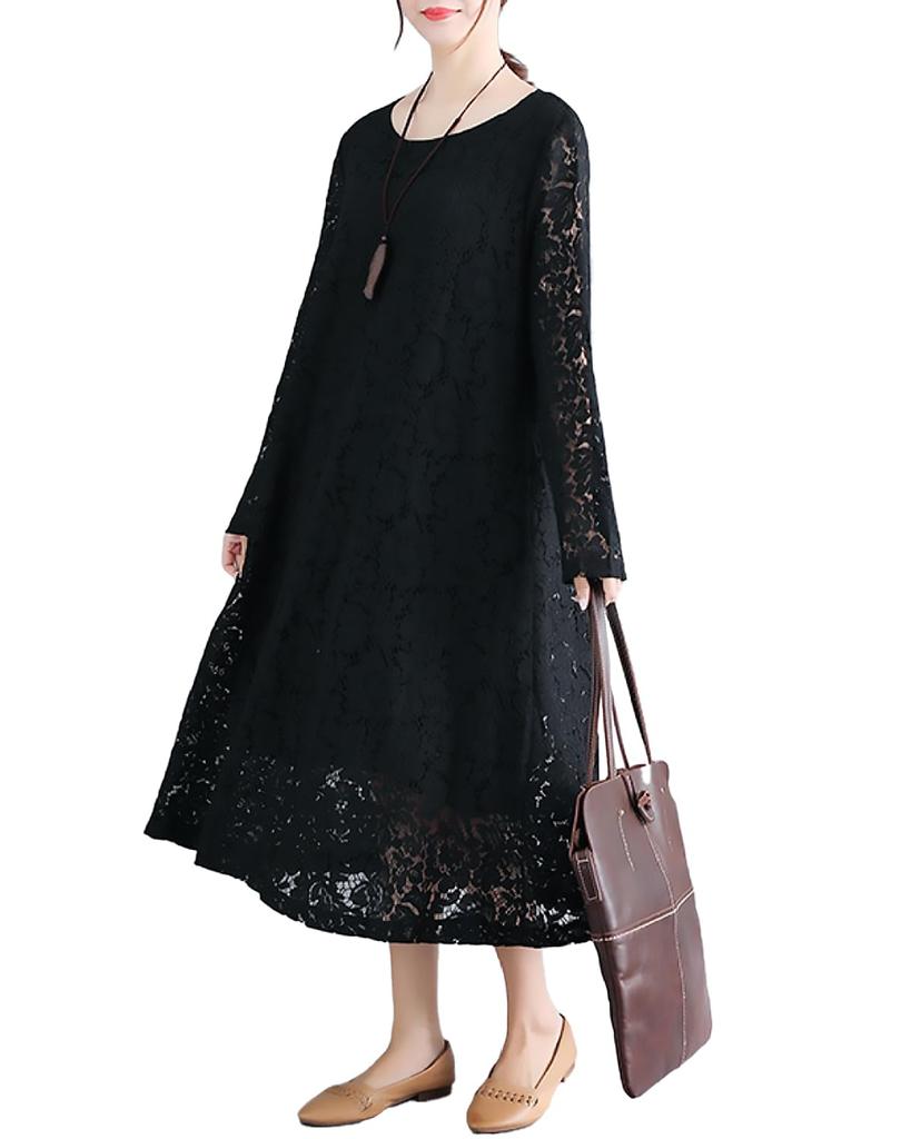 The relaxed round collar and relaxed width of the dress make it stylish with lace, but it's also comfortable to wear. As for washing, we recommend hand washing in lukewarm water separately from other laundry, as color bleeding may occur.