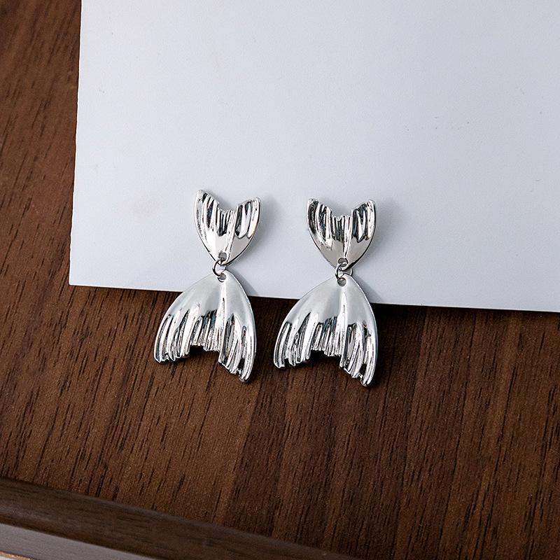 Metal Cold Wind Fishtail Earrings, Simple Light Luxury Irregular Pleated Earrings Design Earrings