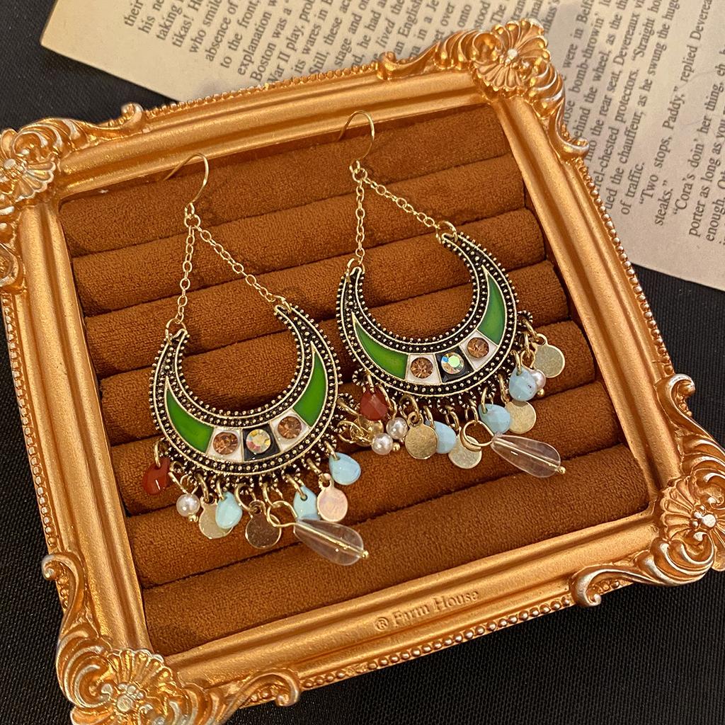 Bohemian Ethnic Style Long Fringed Earrings Temperament Retro Stud Earrings Light Luxury High-End Earrings