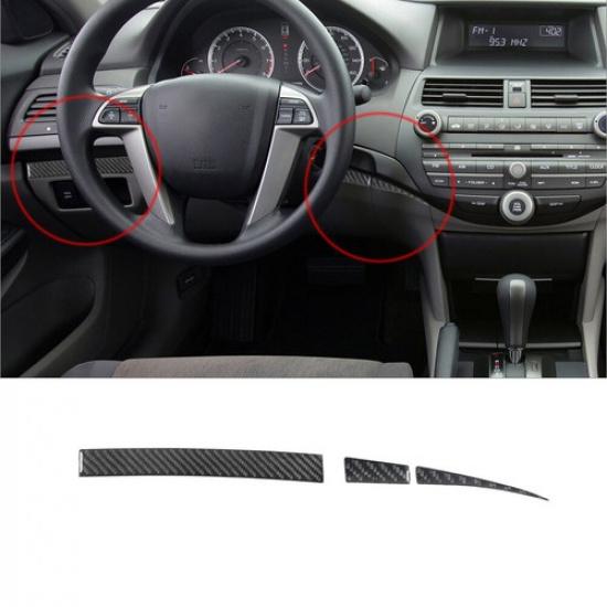 3Pcs For Honda Accord 2008-12 Carbon Fiber Interior Driver Dashboard Cover Trim