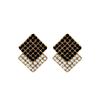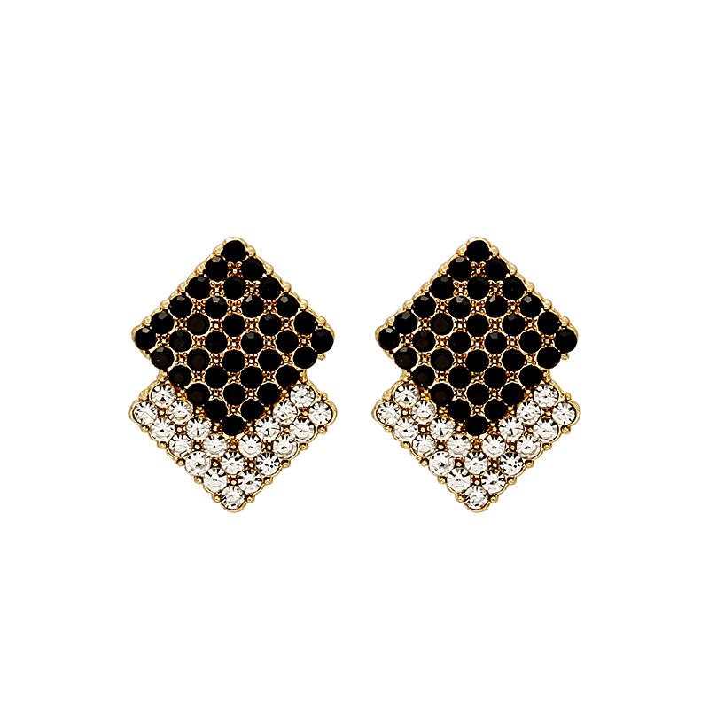 Atmospheric Rhombus Contrasting Black Diamond-Encrusted Square Stud Earrings, Retro Hong Kong Style Fashionable And Simple Personalized Earrings