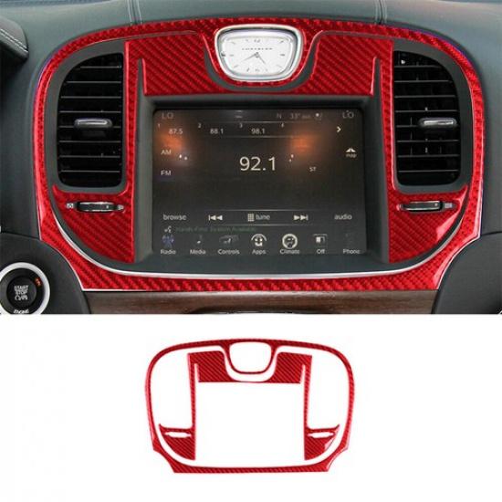 For 2015- Chrysler 300 Red Carbon Fiber Interior Central Console Cover Trim