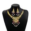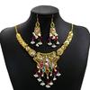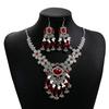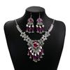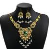 Luxury Exaggerated Jewelry Set, Vintage Court Gemstone Necklace, Geometric Flower Fringed Pearl Earrings